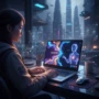 • Prompt: “High-tech creative studio, warm purple lighting, diverse team working on holographic screens, cinematic angle.”